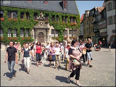 Stadtführungen in Quedlinburg buchen. Engagierte Quedlinburger Stadtführer zeigen nicht nur die architektonischen Besonderheiten einer der bedeutendsten deutschen Fachwerk-Städte, sondern führen auch auf lebendige Weise in das Leben im frühen Mittelalter ein, als Quedlinburg die kulturelle Hauptstadt des neuen Heiligen Römischen Reiches war.